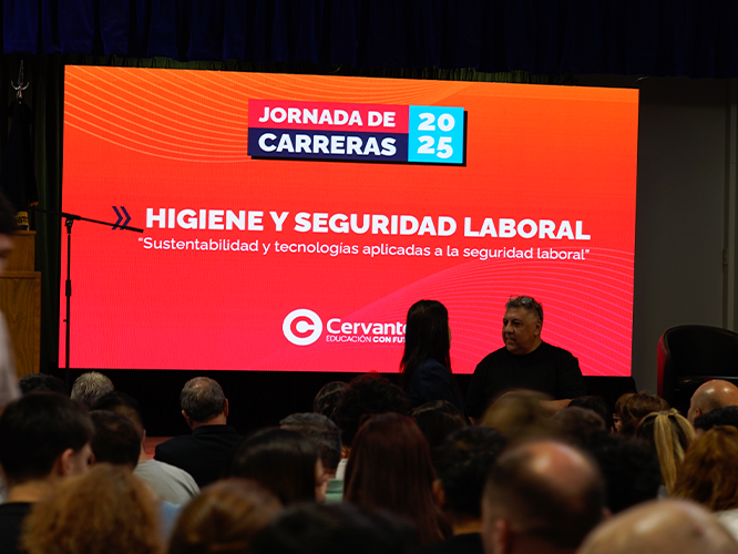 El 13 de octubre en el salón auditorio de AGEC, Cervantes llevó adelante la Jornada de Carreras de Higiene y Seguridad Laboral 2025, bajo el lema “Sustentabilidad y tecnologías aplicadas a la seguridad laboral”.